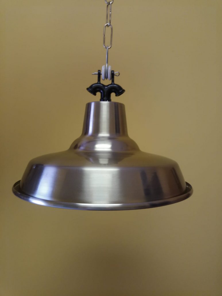 Mounting: Chain length: 40 ” (1 meter). Ceiling Canopy: 5,5 ” / 14cm Max Wattage Per Socket: 100W Standard Incandescent or Led Bulb, medium socket A19. Bulb Not Included Number of Sockets: 1